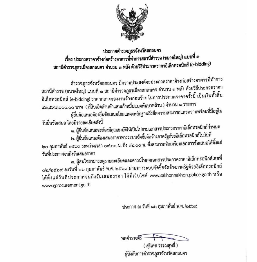 วันที่ 1 ม.ค.2569 เวลา 09.00 น. พล.ต.ต.สุริเดช วรรณสุทธิ์ ผบก.ภ.จว.สกลนคร ร่วมพิธีลงนามถวายพระพร เนื