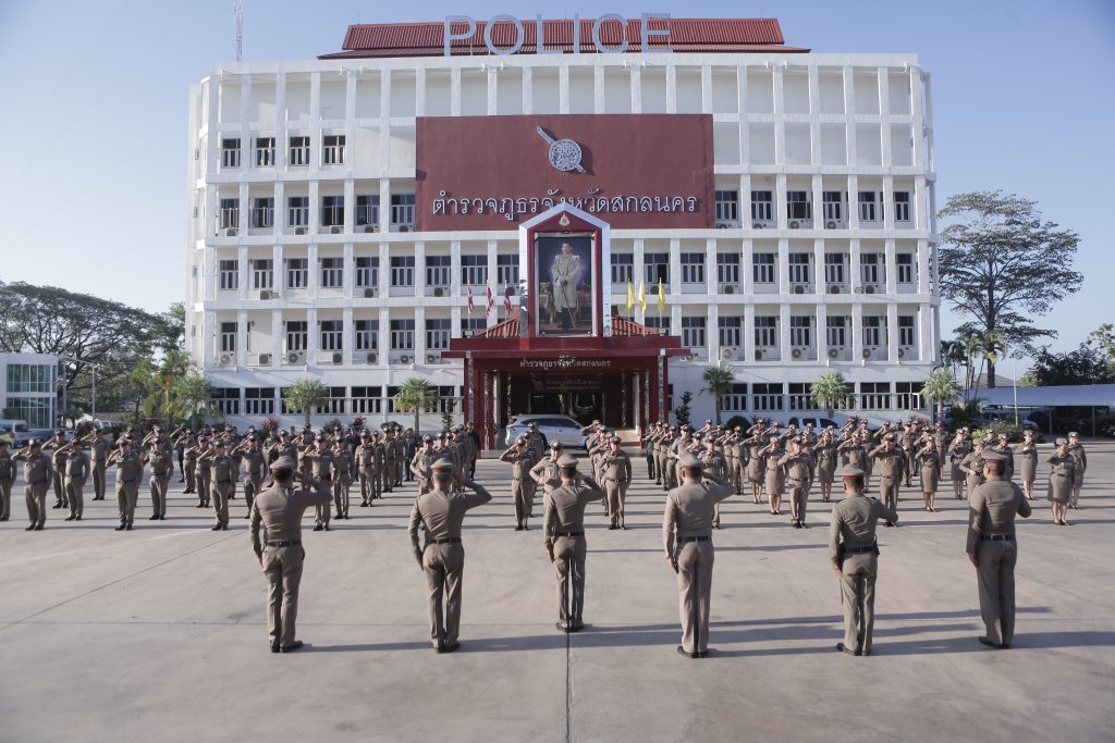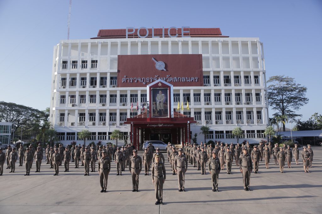 ณ บริเวณลานฝึกหน้าอาคารตำรวจภูธรจังหวัดสกลนคร