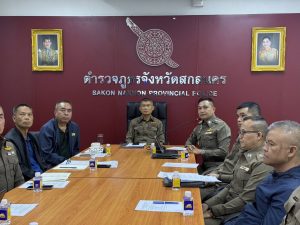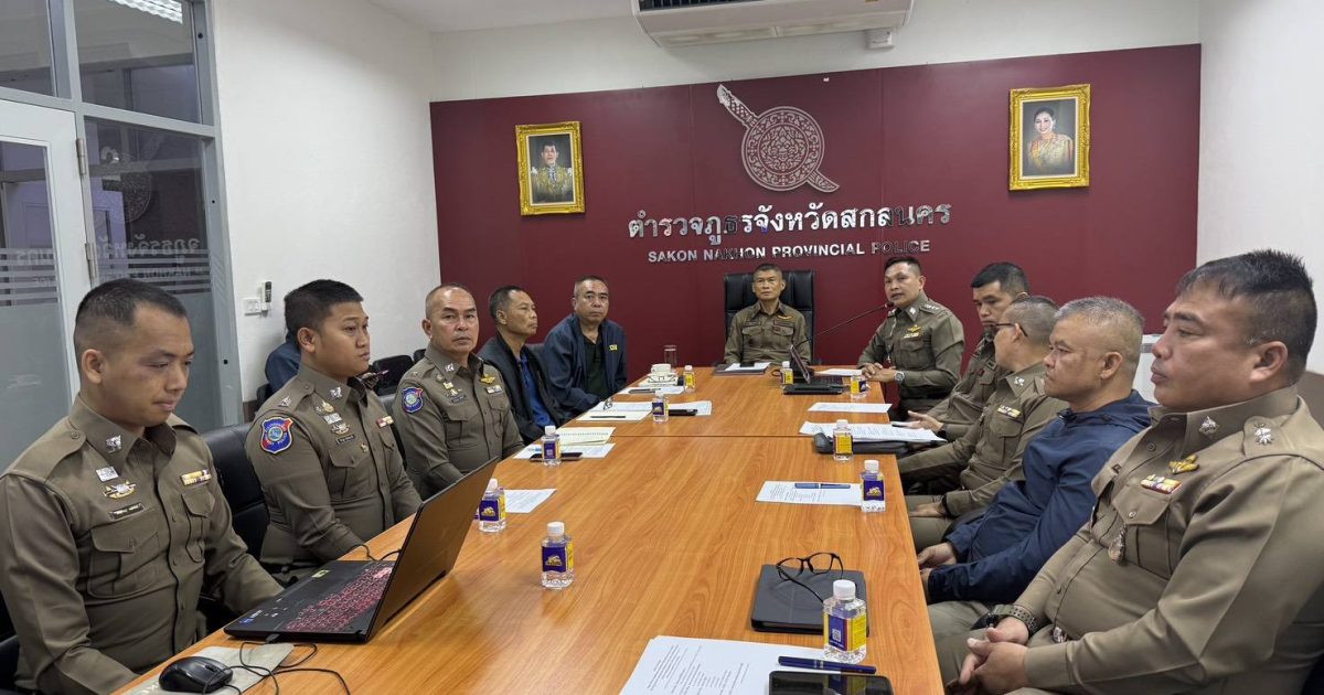โดยมี พ.ต.อ.กิตติพงษ์ จิตรคาม ผกก.สืบสวนฯ, พ.ต.อ.อภิรักษ ศรีหารักษา ผกก.สภ.เมืองสกลนคร, เจ้าหน้าที่งานมั่นคง และส่วนที่เกี่ยวข้อง เข้าร่วม
