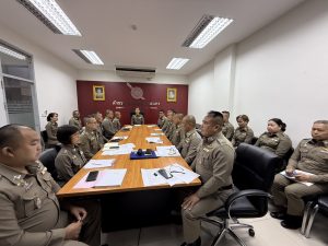 โดยมี พ.ต.อ.ศาสตรา คงนาม ผกก.ฝอ.ฯ, รอง ผกก.ฯ, สว.เเผนกงาน (ทุกเเผนกงาน) และเจ้าหน้าที่ผู้เกี่ยวข้อง เข้าร่วมประชุม
