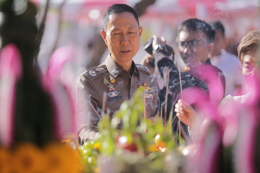 พร้อมด้วย พ.ต.อ.โชคชัย อินทะนิน รอง ผบก.ฯร่วมพิธีทำบุญตักบาตร ทอดผ้าป่าสามัคคี และร่วมเป็นเกียรติในพิธีวางศิลาฤกษ์และเททองหล่อพระอนุสาวรีย์ พระเจ้าบรมวงศ์เธอ พระองค์เจ้ารพีพัฒนศักดิ์ กรมหลวงราชบุรีดิเรกฤทธิ์