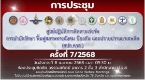 ร่วมประชุมศูนย์ปฏิบัติการติดตามเร่งรัดการบำบัดรักษา ฟื้นฟูสภาพทางสังคม ป้องกันและปราบปรามยาเสพติด (ศปก.ครส.) ครั้งที่ 7/2568 ผ่านสื่ออิเล็กทรอนิกส์ระบบ Cisco Webex Meetings