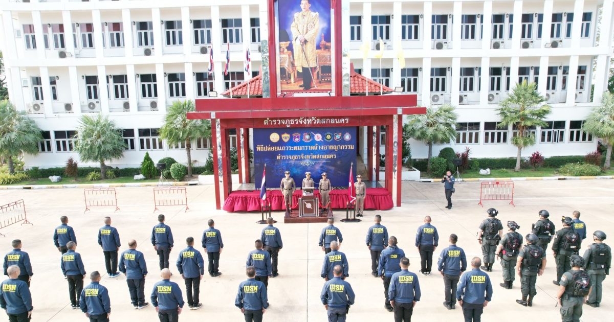 ณ บริเวณลานฝึกอินทรจักร์ หน้าอาคารที่ทำการตำรวจภูธรจังหวัดสกลนคร