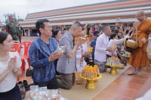 ร่วมพิธีทำบุญตักบาตร และพิธีบำเพ็ญกุศล ทักษิณานุประทานอุทิศถวายเป็นพระราชกุศลและน้อมรำลึกในพระมหากรุณาธิคุณ พระบาทสมเด็จพระ นั่งเกล้าเจ้าอยู่หัว รัชกาลที่ 3 “เนื่องในงานฉลองสมโภช 187 ปี เมืองสกลนคร”