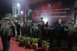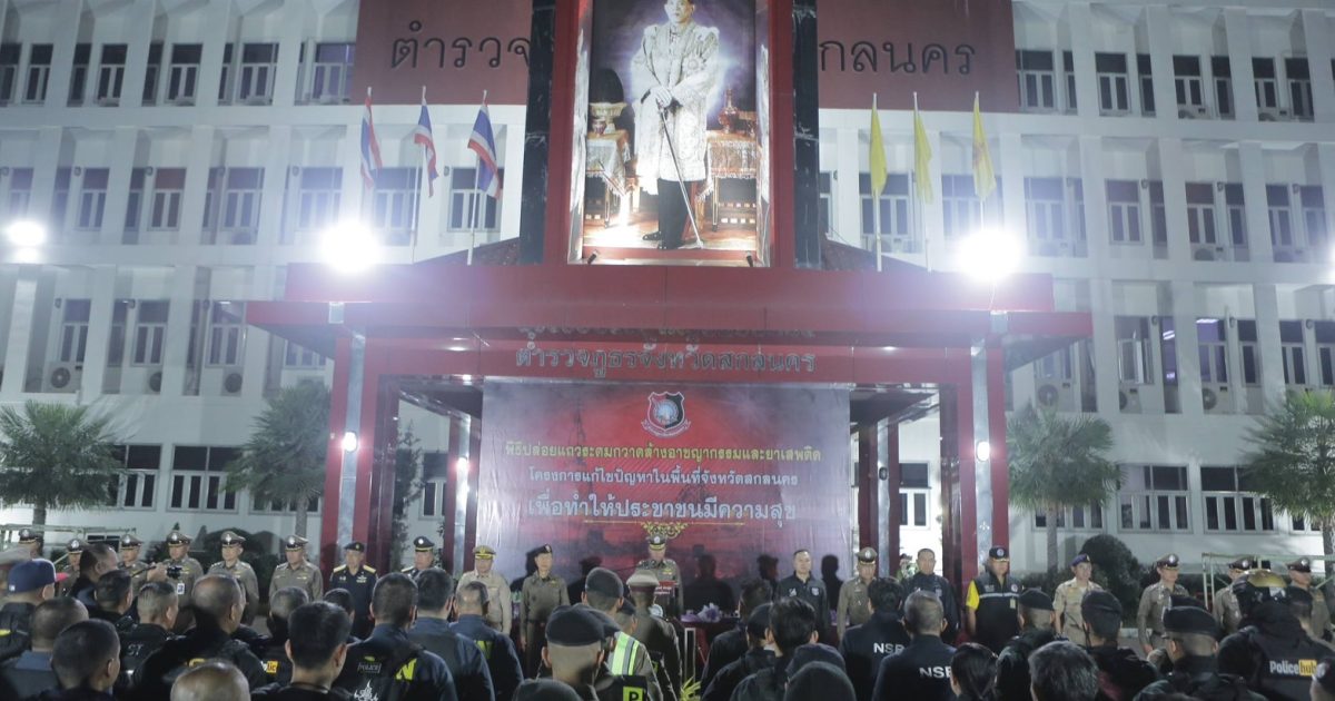ร่วมพิธีปล่อยแถวชุดปฏิบัติการปิดล้อมตรวจค้นเป้าหมายยาเสพติด ตามโครงการแก้ไขปัญหาในพื้นที่จังหวัดสกลนคร เพื่อทำให้ประชาชนมีความสุข