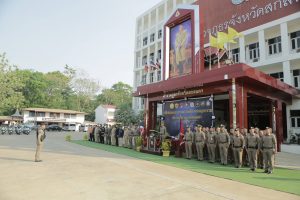 โดยมี พ.ต.อ.ศาสตรา คงนาม ผกก.ฝอ.ภ.จว.สกลนคร เป็นผู้กล่าวรายงาน พร้อมด้วย หน.สภ.ในสังกัด, ผู้แทน ผบ.มทบ.29, นายแพทย์สาธารณสุขจังหวัดสกลนคร, ป้องกันจังหวัดสกลนคร, กอ.รมน.จว.สน., ตชด.23, พฐ.สกลนคร, ข้าราชการตำรวจ กก.สส.ฯ, ฝอ.ภ.จว.สกลนคร และส่วนที่เกี่ยวข้อง เข้าร่วม