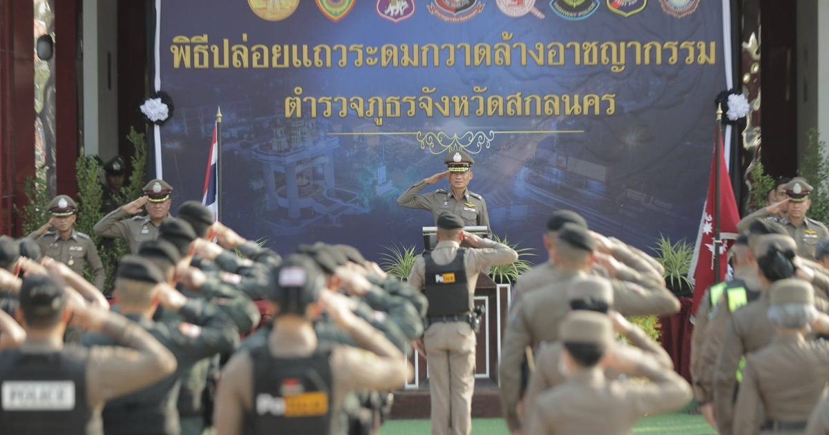 ร่วมพิธีปล่อยแถวป้องกันปราบปรามอาชญากรรม รักษาความสงบเรียบร้อย การดูแล อำนวยความสะดวกด้านการจราจร การป้องกันและลดอุบัติเหตุทางถนน ในช่วงวันสงกรานต์ 2569 ตำรวจภูธรจังหวัดสกลนคร