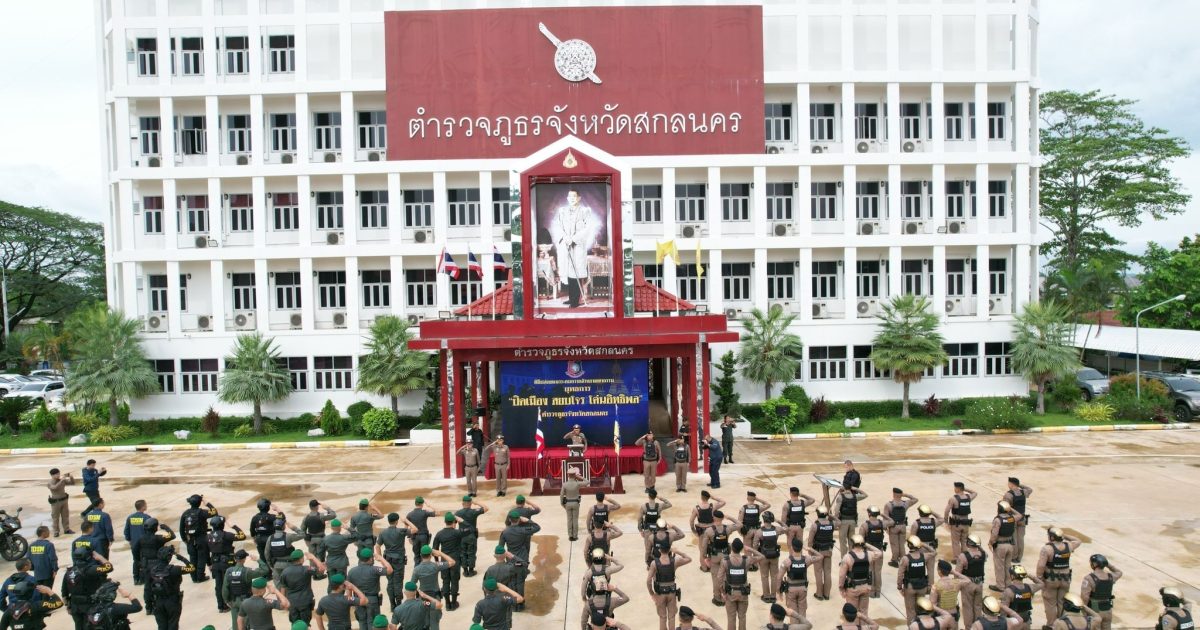 พ.ต.อ.วีระศักดิ์ พิมพ์มีลาย รอง ผบก.ภ.จว.สกลนคร เป็นประธาน ร่วมพิธีปล่อยแถว ระดมกรวดล้างอาชญากรรมตามยุทธการ ปิดเมือง สยบโจร โค่นอิทธิพล