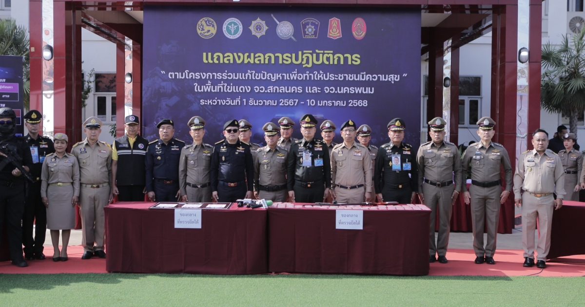 ร่วมแถลงผลการปฏิบัติตามโครงการแก้ไขปัญหาเพื่อทำให้ประชาชนมีความสุข ในพื้นที่ไข่แดง จังหวัดสกลนครและนครพนม