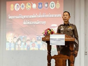 เป็นประธานพิธีเปิดโครงการแก้ไขปัญหายาเสพติดในพื้นที่จังหวัดสกลนคร เพื่อให้ประชาชนมีความสุข