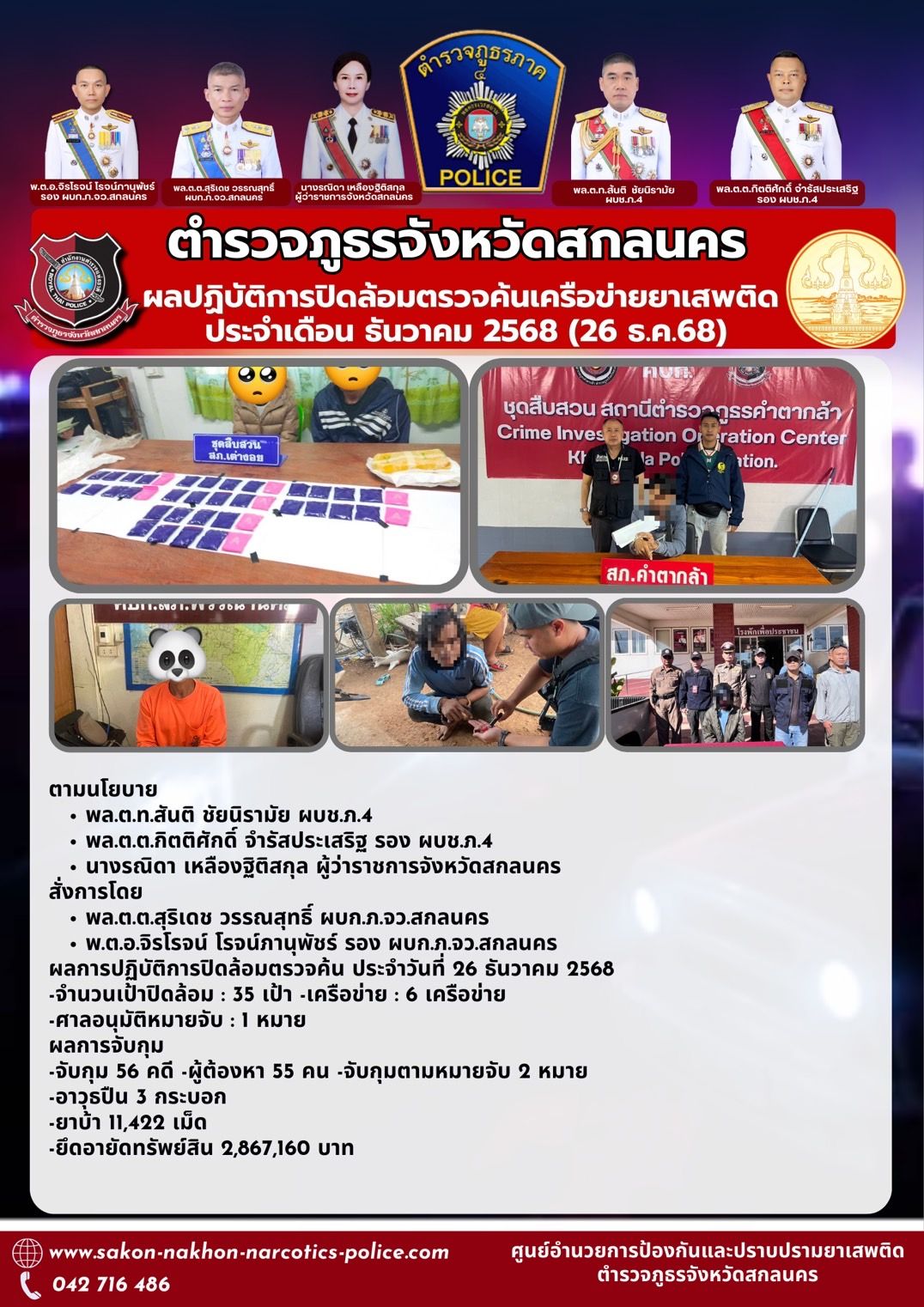 วันที่ 31 ธ.ค. 2568 เวลา 10.30 น. เป็นต้นไป พ.ต.อ. วีระศักดิ์ พิมพ์มีลาย รอง ผบกภ.จว.สกลนคร ตรวจเยี่